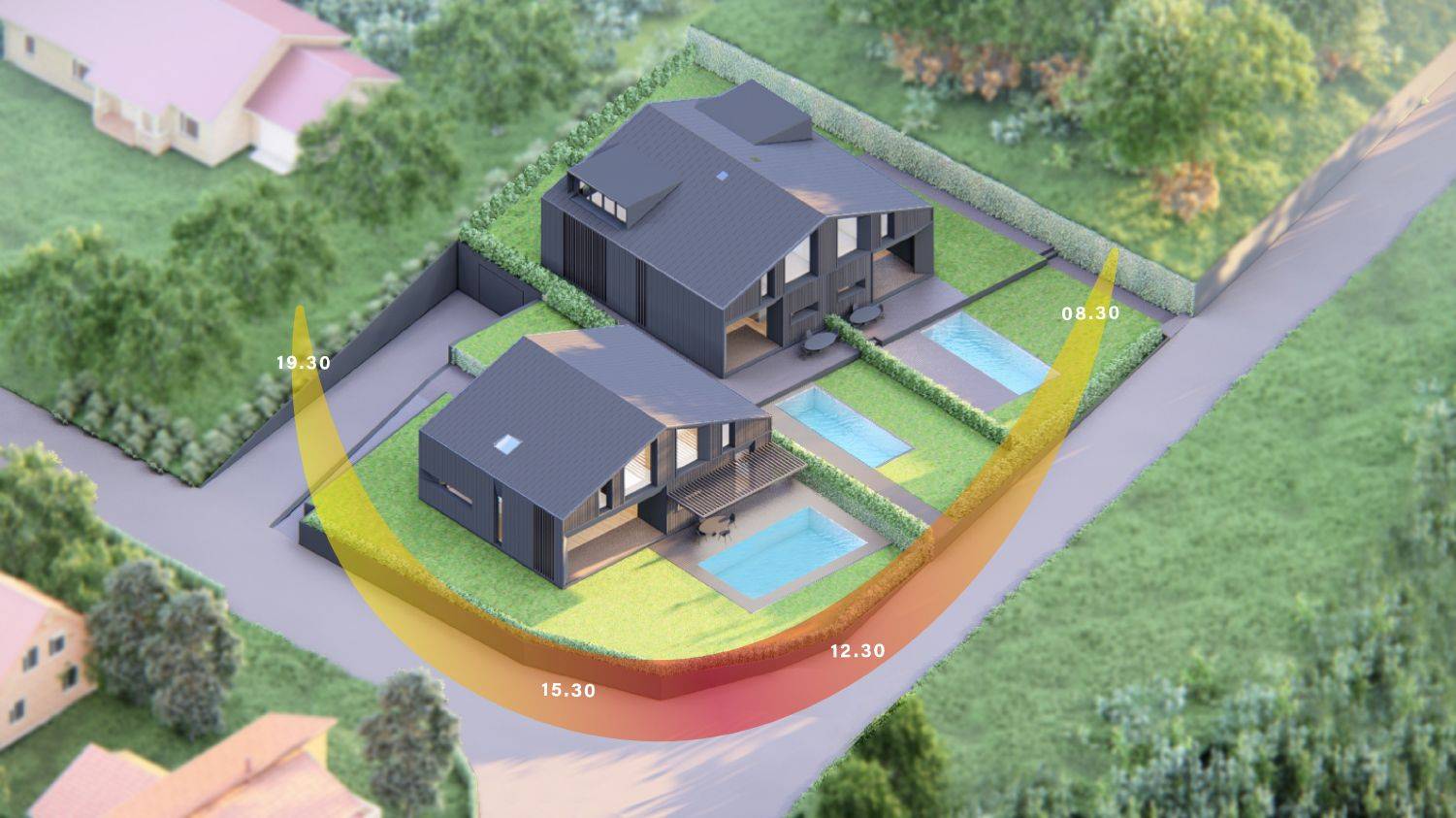 L’orientamento dei lotti e la conformazione altimetrica del terreno hanno guidato la progettazione, favorendo la tutela delle visuali panoramiche verso il parco; la localizzazione consente di coniugare la tranquillità del contesto naturalecon la vicinanza ai principali servizi urbani. Le ville, concepite in armonia con il paesaggio, reinterpretano il linguaggio dell’architettura moderna attraverso volumi puri e proporzioni rigorose, materiali autentici e un equilibrio perfetto tra luce, spazio e natura.