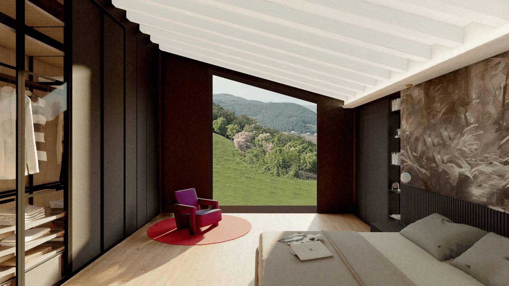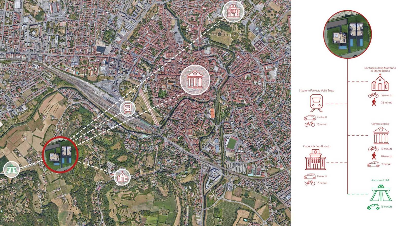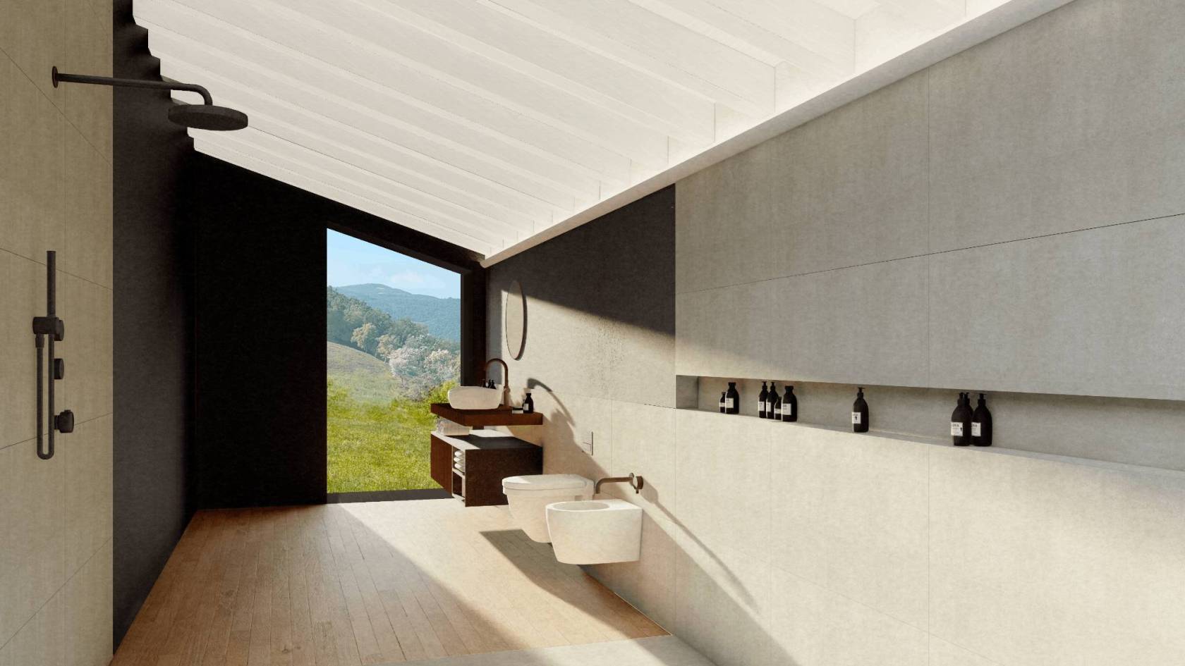 La disposizione planimetrica segue l’andamento morfologico del terreno, garantendo a ciascuna abitazione un affaccio diretto sul parco e una relazione privilegiata con la vegetazione circostante. L’obiettivo complessivo è quello di creare un intervento esemplare per la città di Vicenza, capace di coniugare innovazione, sostenibilità e valore paesaggistico, contribuendo a un’evoluzione contemporanea del modo di abitare in relazione alla natura, per una nuova idea di lusso discreto, fondato sulla matericità dei materiali e la profonda coerenza con il paesaggio vicentino; un modello di architettura residenziale di alta gamma, in cui il lusso è qualità dello spazio, luce e materia.