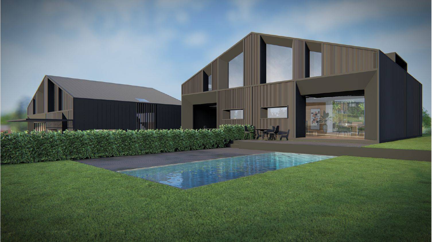 Questo progetto nasce dalla visione di Paolo Sartorello, che desidera donare alla città di Vicenza un nuovo modo di abitare contemporaneo: un’architettura che unisce rigore e poesia, silenzio e luce, in perfetto equilibrio tra forma e vita, un design nordico dall’anima italiana; queste case non vogliono stupire, vogliono durare, diventare parte del respiro urbano di Vicenza, portando un messaggio chiaro —che il vero lusso oggi è vivere la bellezza della semplicità. L’uso di materiali scuri, conferisce un’eleganza silenziosa, mentre il contrasto con i pieni e vuoti delle logge e dei porticati introduce un ritmo architettonico equilibrato che dialoga con superfici in legno o doghe verticali, suggerendo una poetica dell’essenzialità e della durata nel tempo. È un’architettura sobria, potente e autentica, che unisce rigore formale e vita quotidiana.