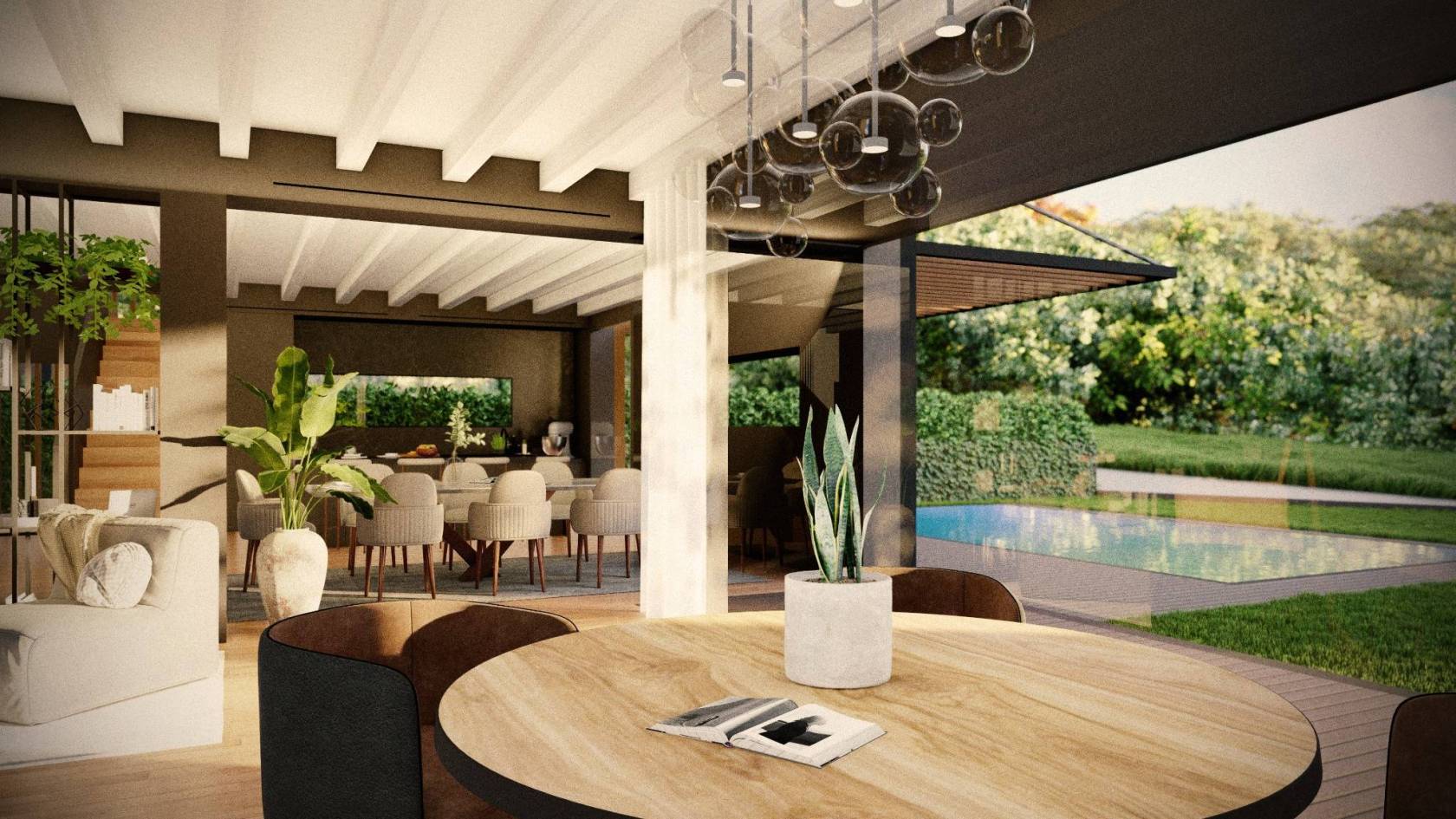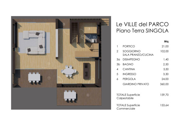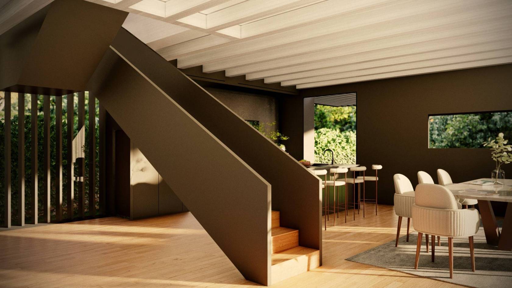 Gli spazi interni ed esterni dialogano con naturalezza, creando un ambiente abitativo elegante e contemporaneo. La proprietà è circondata da circa 360 mq di giardino privato su quattro lati, impreziosito da piscina, uno spazio pensato per vivere momenti di relax, convivialità e privacy assoluta.