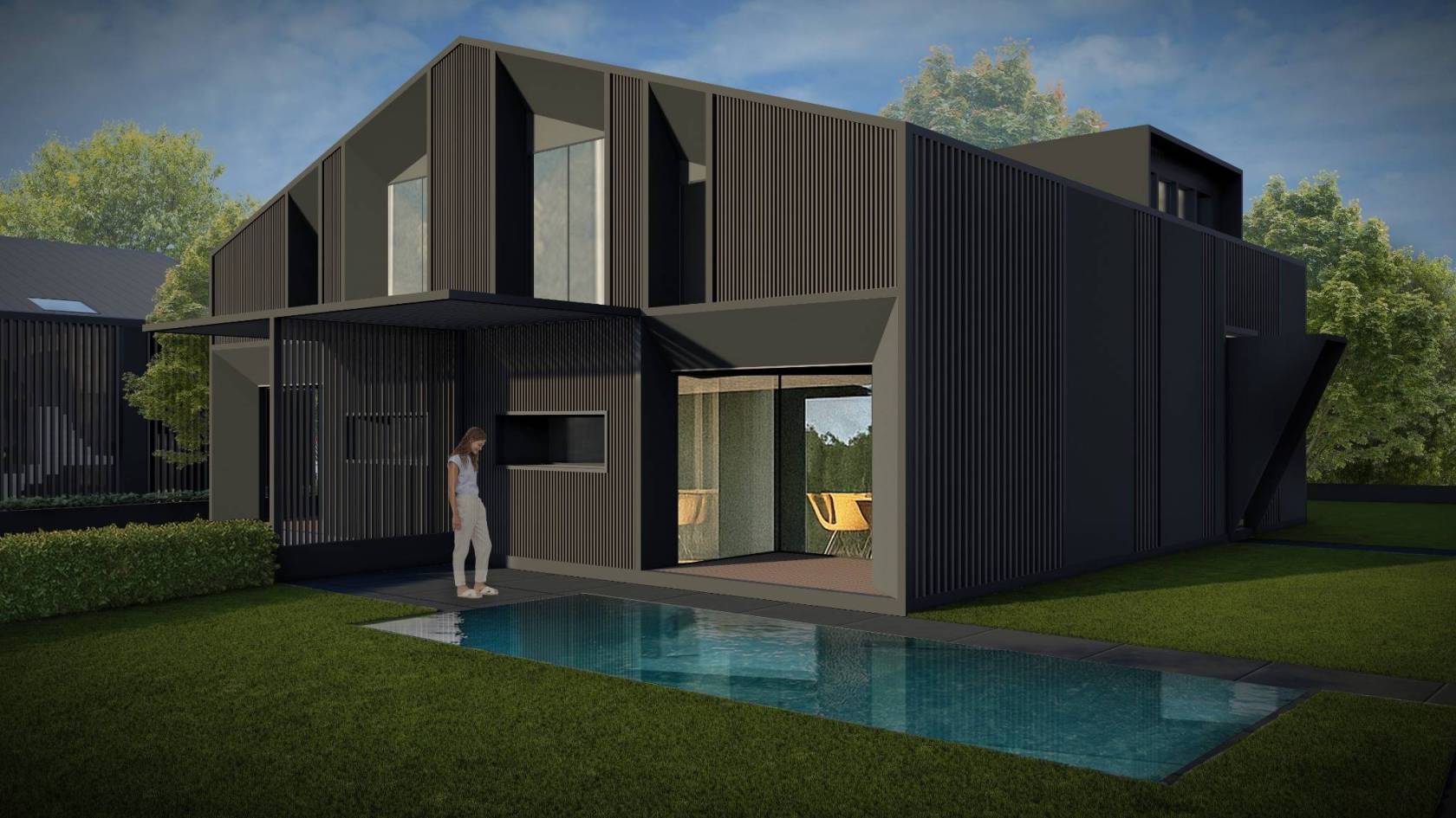 La piscina privata e gli spazi esterni diventano così un luogo perfetto per vivere momenti di relax e convivialità. Architettura e comfort – La villa si sviluppa su tre livelli, progettati per garantire eleganza e funzionalità.